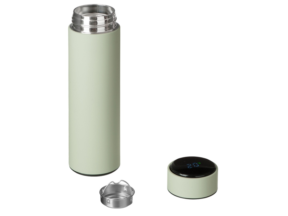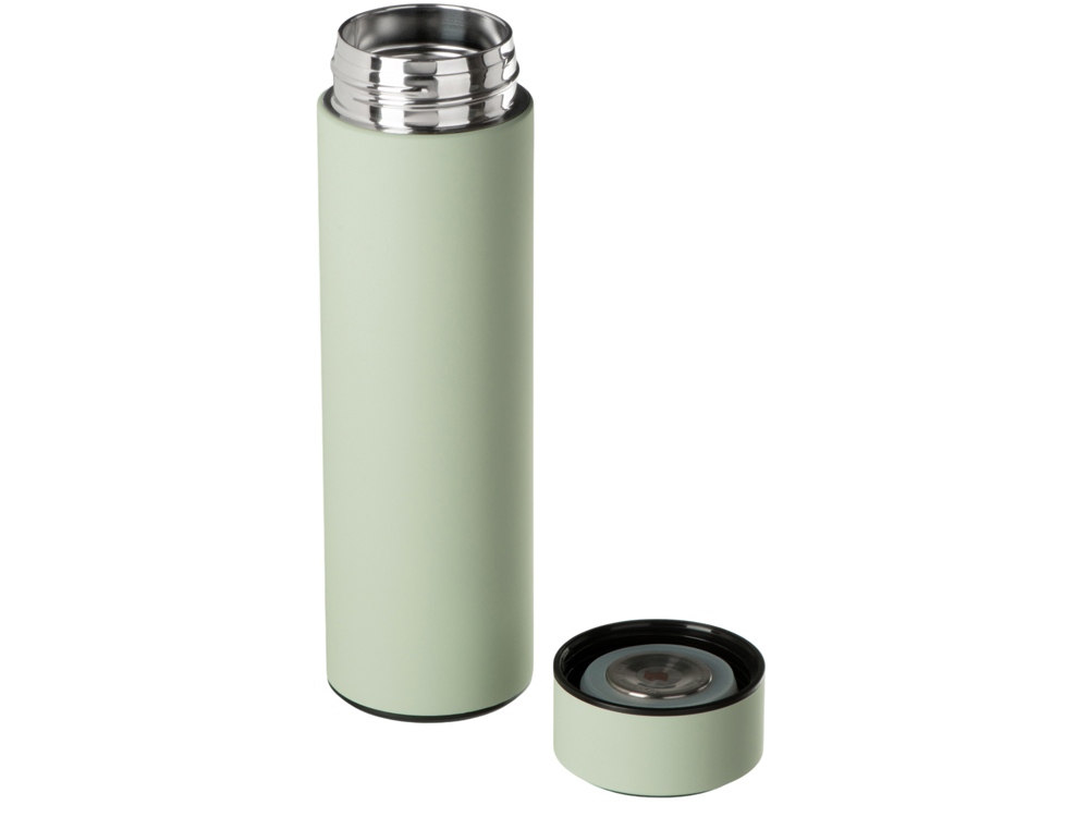 Вакуумный термос Module X не только сохраняет ваши напитки горячими, но и показывает, насколько они горячие! Уникальная особенность термоса — это сенсорный индикатор температуры, расположенный в крышке. Чтобы узнать температуру внутри термоса, достаточно прикоснуться к поверхности крышки. Батарейку CR2032 по истечении срока работы (1-2 года) можно заменить — для этого открутите верхнюю часть крышки против часовой стрелки и аккуратно поменяйте элемент питания.