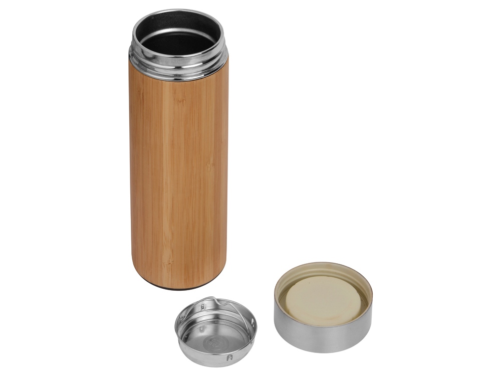 Вакуумный термос с корпусом из натурального бамбука. Благодаря вакуумной изоляции и нержавеющей стали 304 пробы термос удерживает тепло напитков в течение 12 часов. В комплекте имеется съемное ситечко. Компактный, экологичный, стильный. Объем 400 мл. -