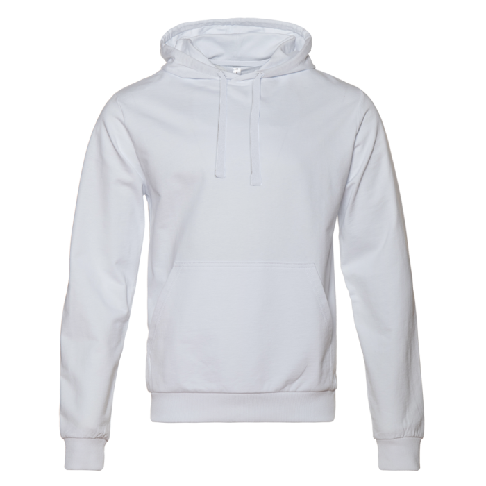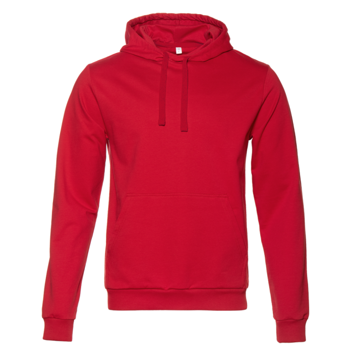Толстовка без начеса выполнена из мягкого футера (100% хлопок), подклад – кулирная гладь (100% хлопок). Оба материала устойчивы к механическому воздействию и вытяжению, практически не поддаются пилингу.