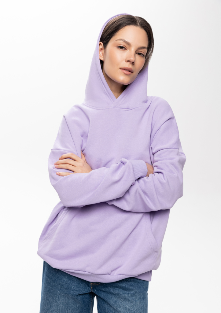 Универсальная толстовка свободного силуэта с капюшоном комфортной глубины, спущенной линией плеча и глубоким карманом-кенгуру. Манжет и низ изделия оформлены широкой эластичной резинкой.