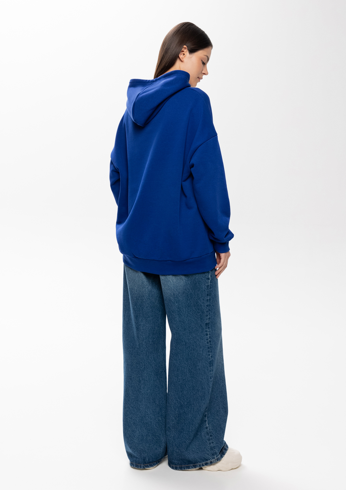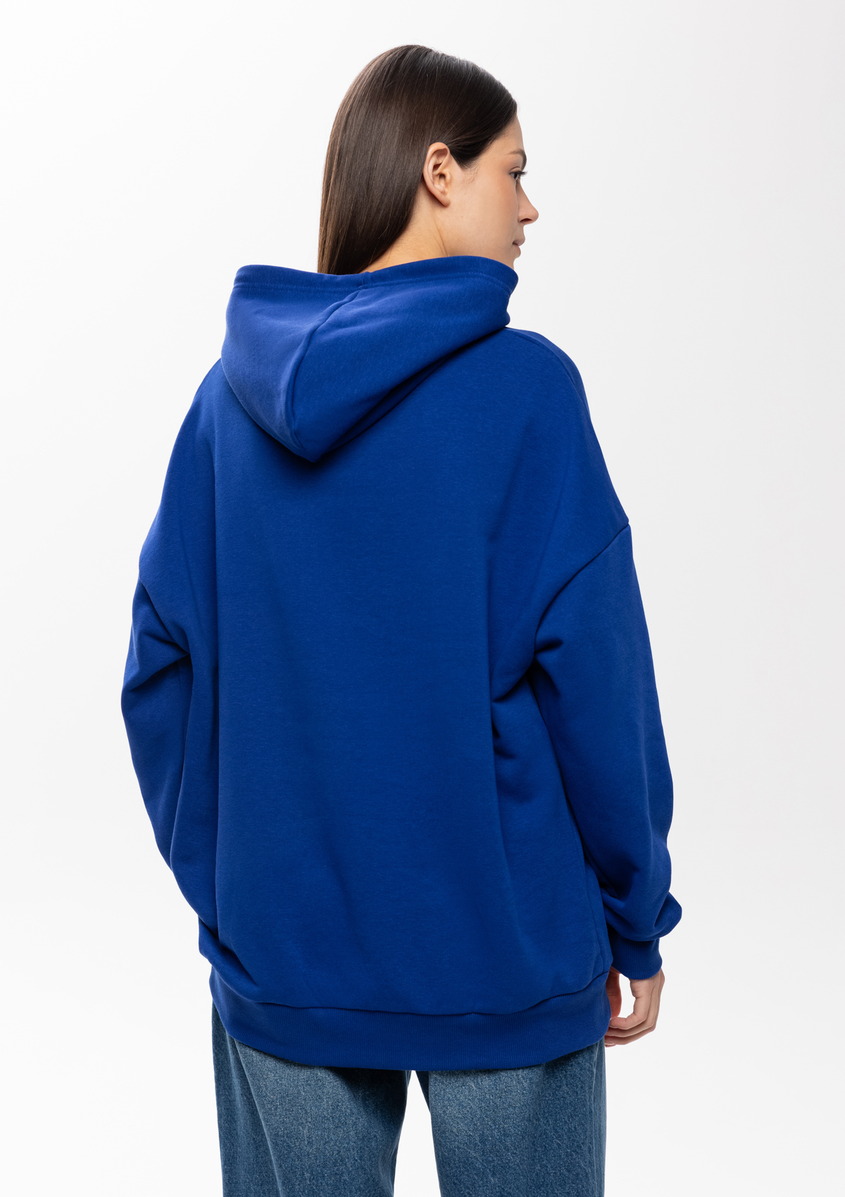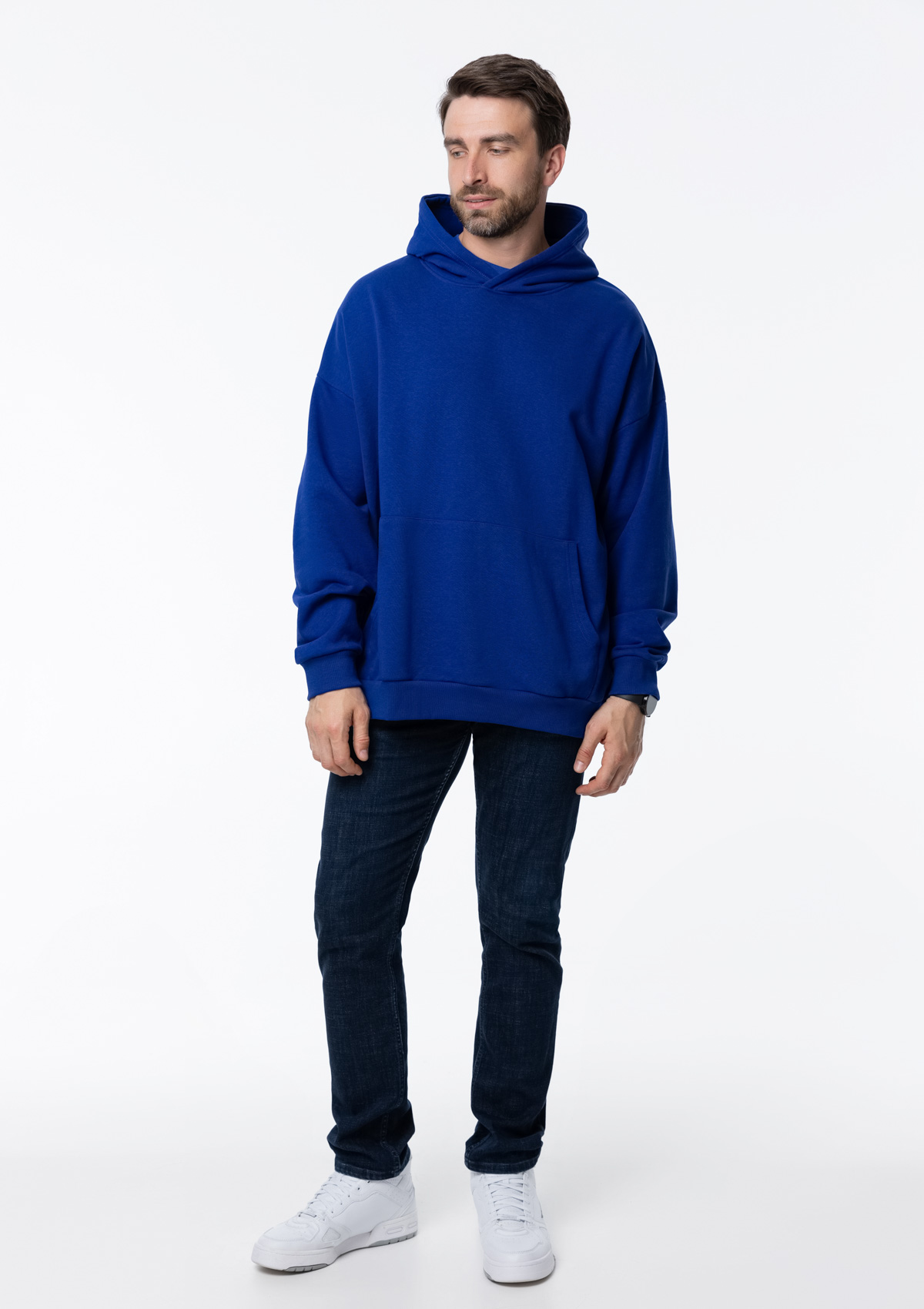 Универсальная толстовка свободного силуэта с капюшоном комфортной глубины, спущенной линией плеча и глубоким карманом-кенгуру. Манжет и низ изделия оформлены широкой эластичной резинкой.