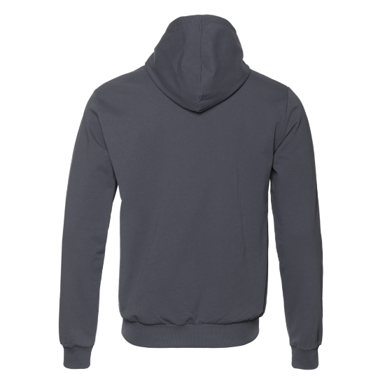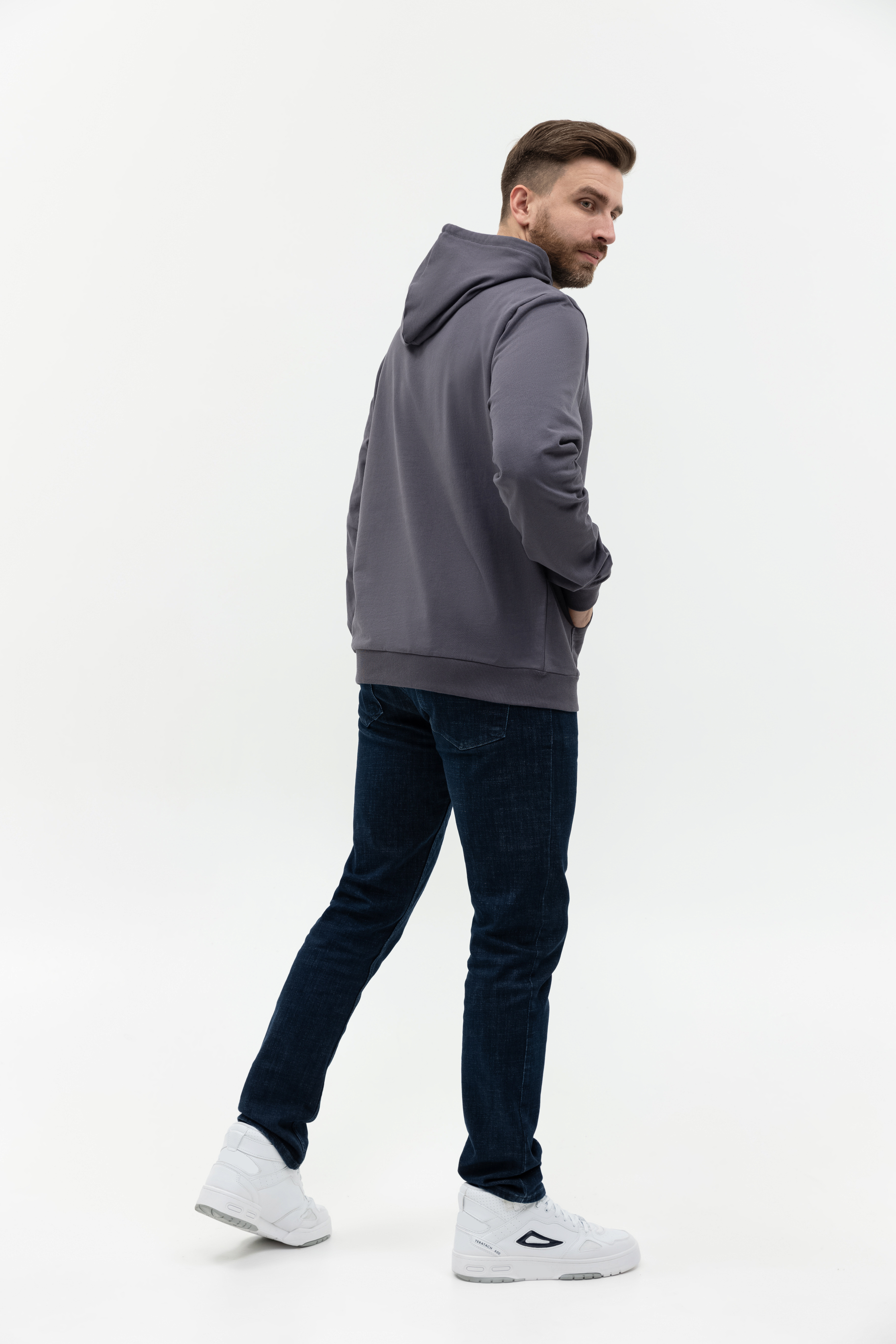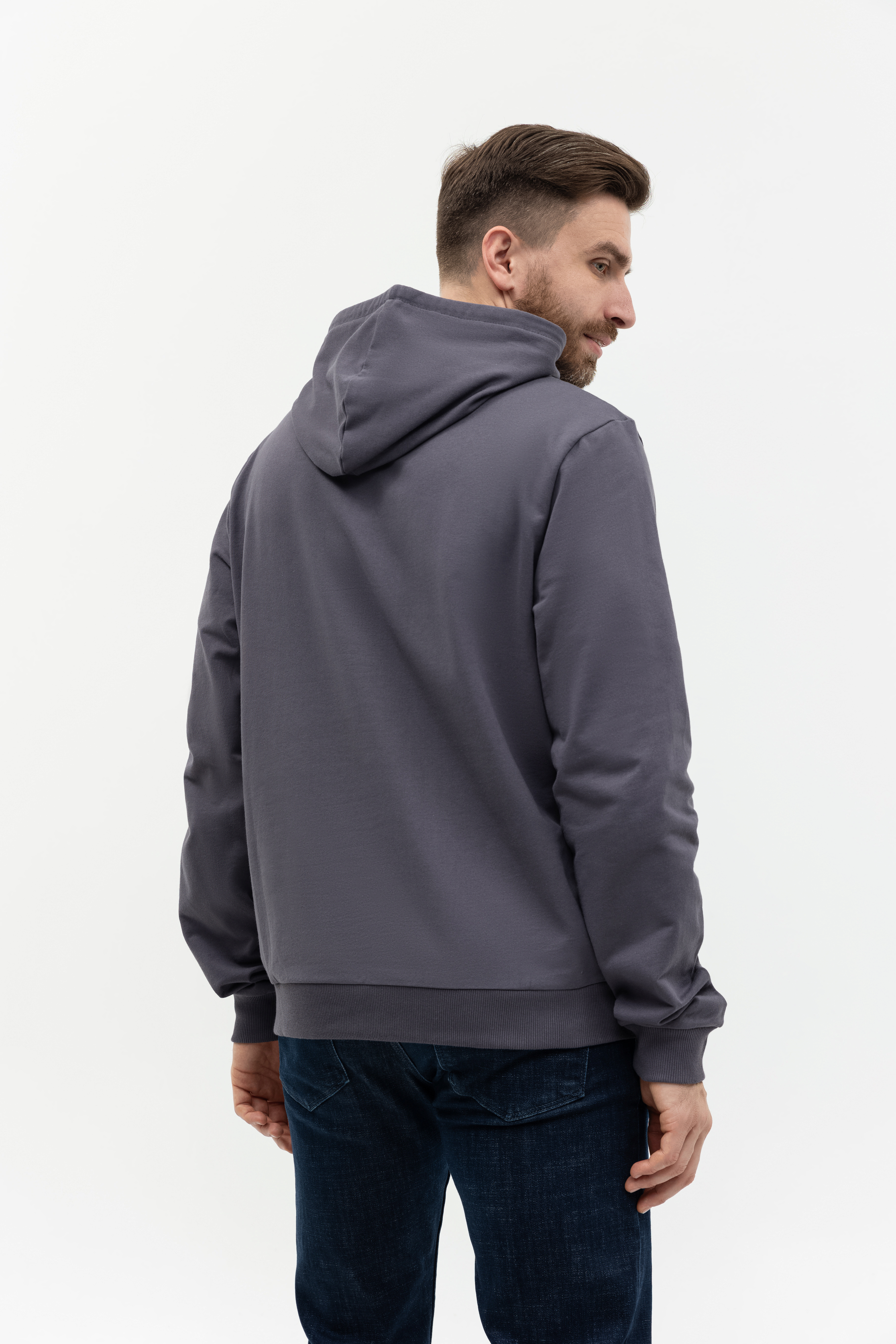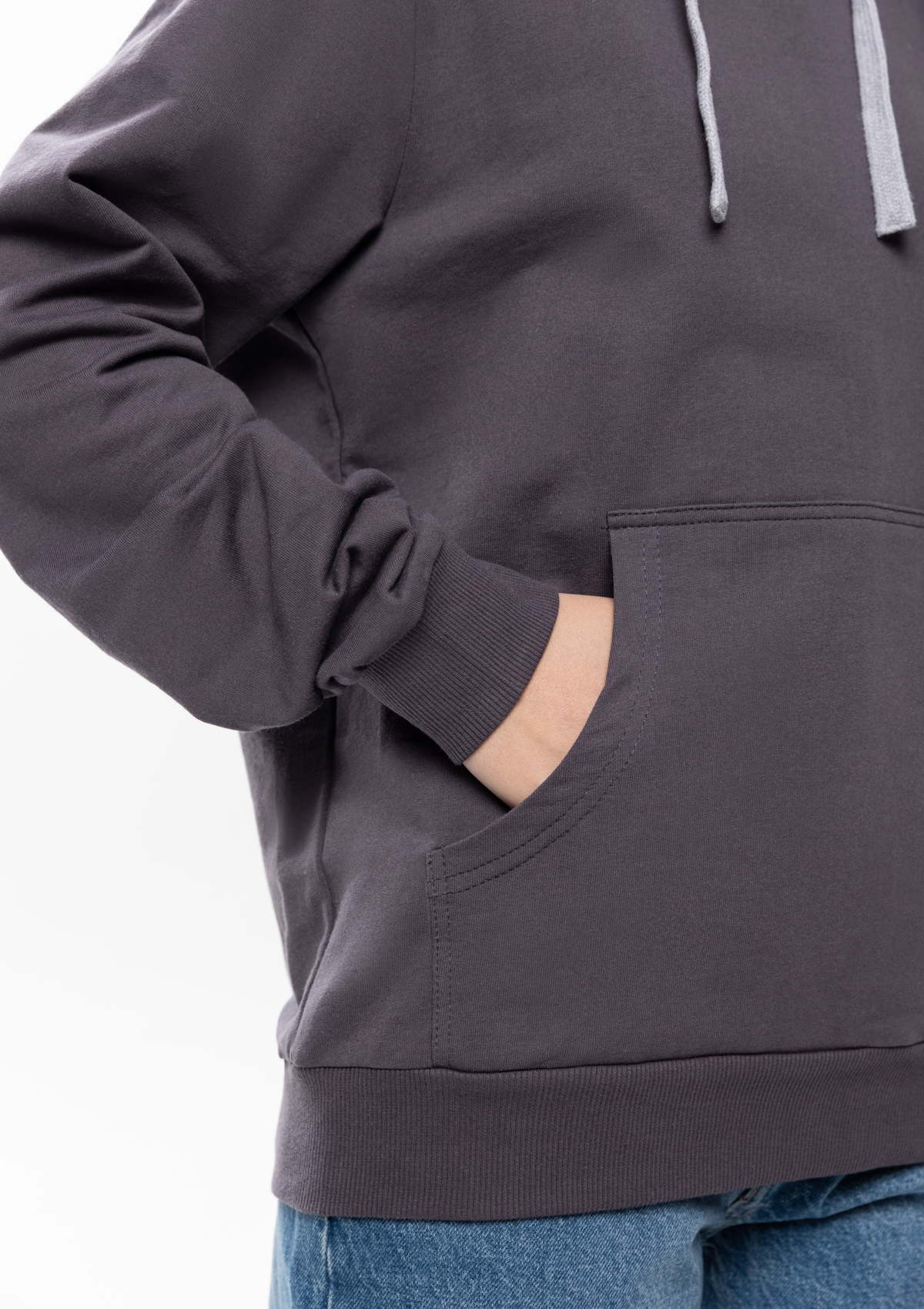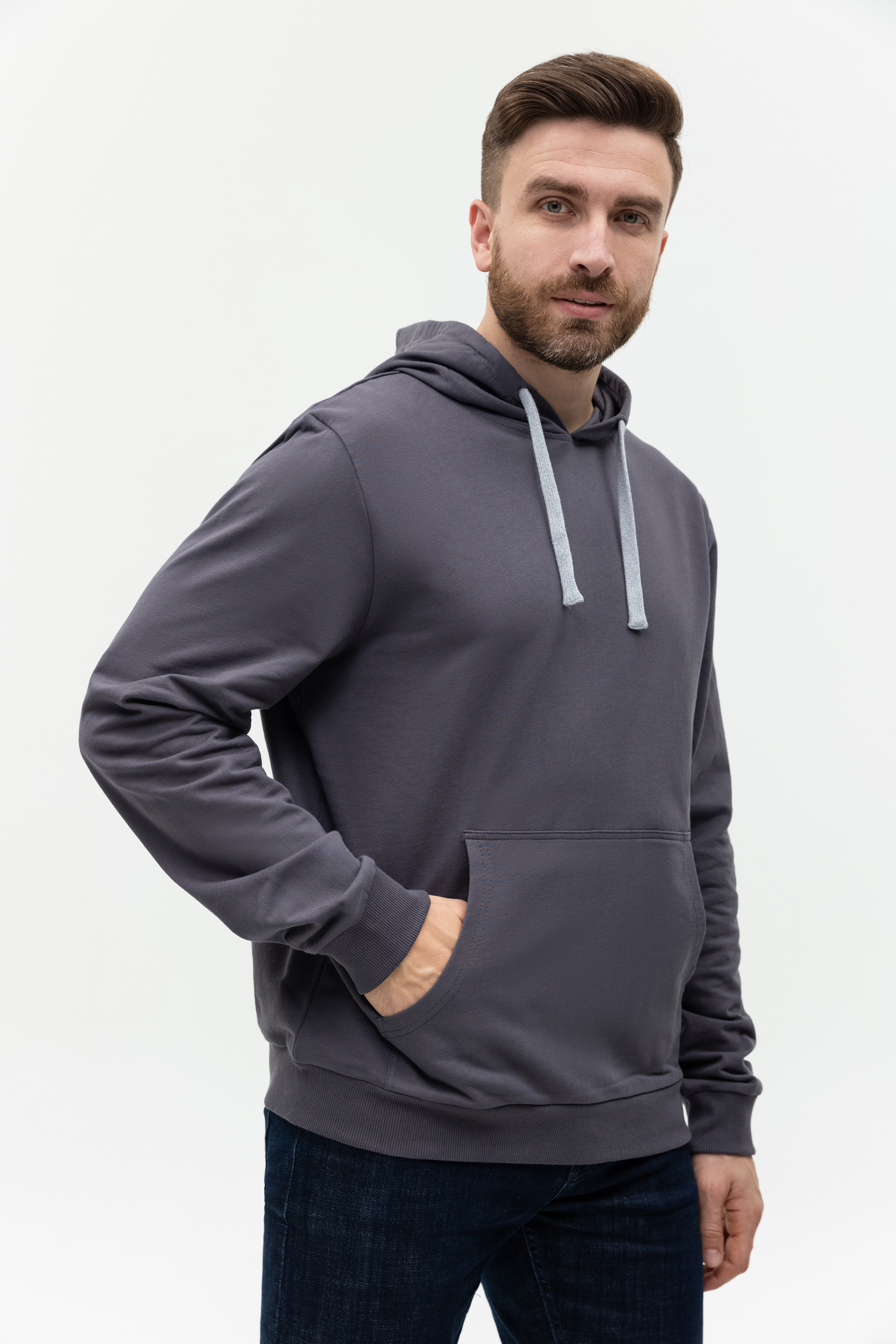 Толстовка без начеса выполнена из мягкого футера (100% хлопок), подклад – кулирная гладь (100% хлопок). Оба материала устойчивы к механическому воздействию и вытяжению, практически не поддаются пилингу.