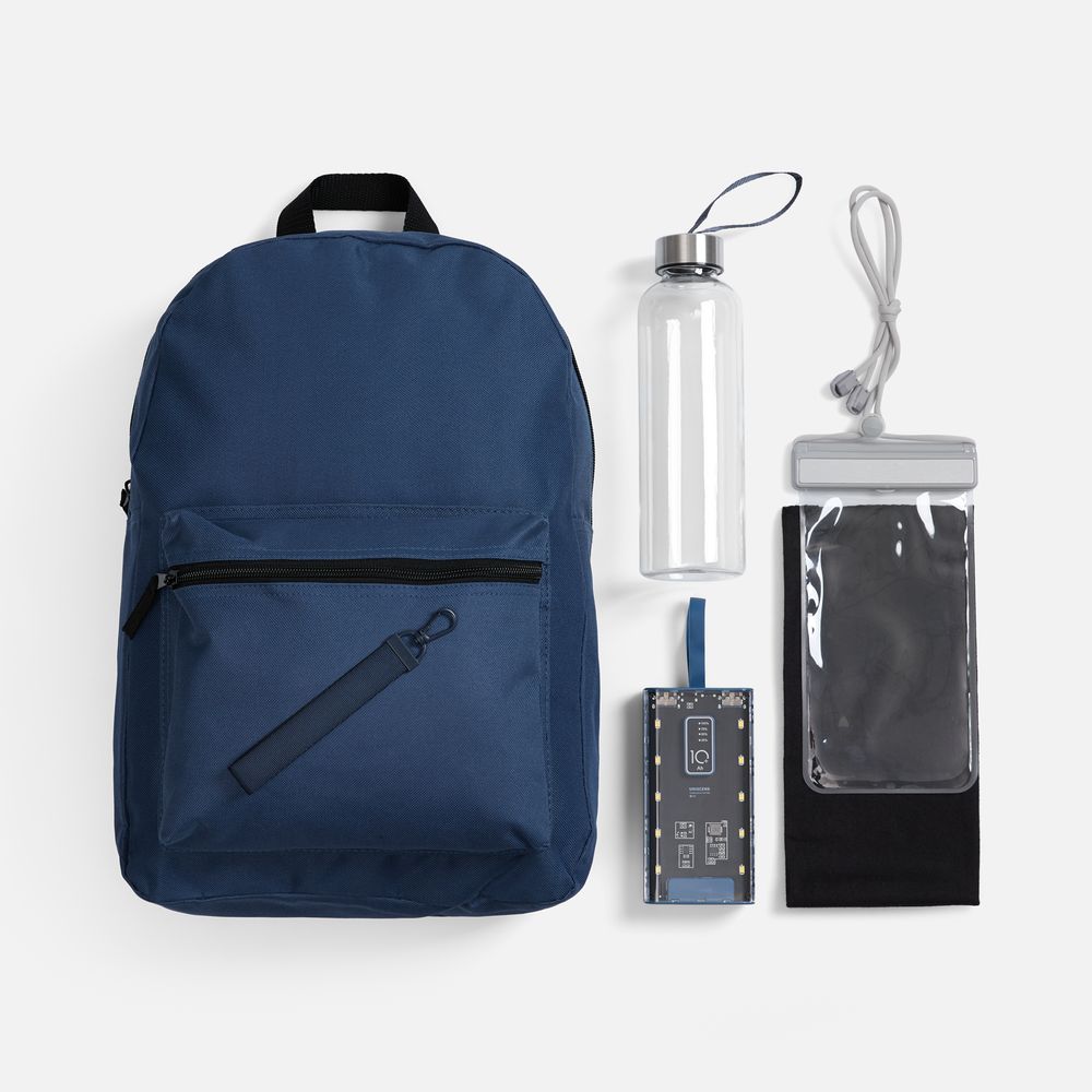 аккумулятор - пластик, акриловое стекло; рюкзак - полиэстер, 600D; водонепроницаемый чехол - АБС-пластик, ПВХ; бутылка - пластик, пищевой; крышка - металл, пластик; бандана - полиэстер 100%, плотность 140 г/кв.м; джерси; ремувка - металл, полиэстер 100%