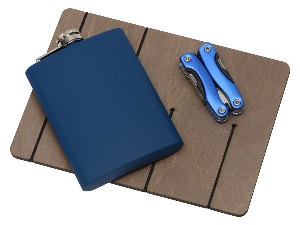 фляжка- нержавеющая cталь с покрытием софт-тач, мультиинструмент- металл, ложемент- фанера