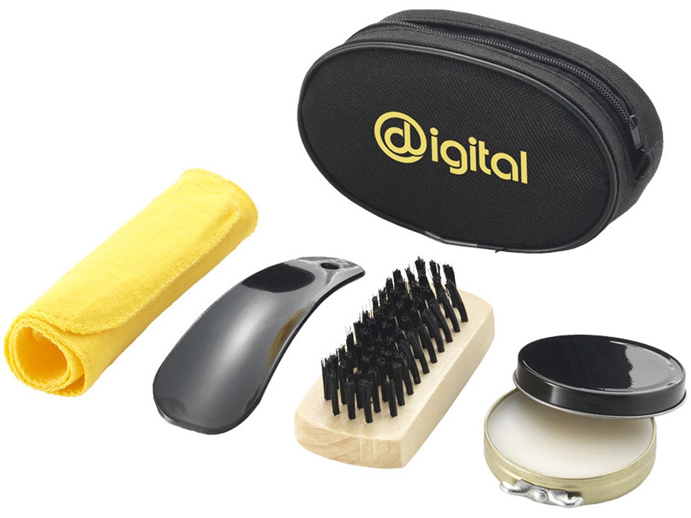 Набор для ухода за обувью - отличный подарок для тех, кто часто ездит в деловые поездки. В наборе такие необходимые аксессуары, как бесцветный крем для обуви, щетка, салфетка для полировки. Компактно упакованы в нетканый чехол, на который можно нанести изображение. -