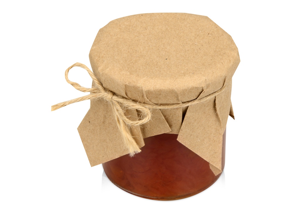 Банка варенья обернута крафт-бумагой, на которую возможно сделать нанесение корпоративного логотипа. -