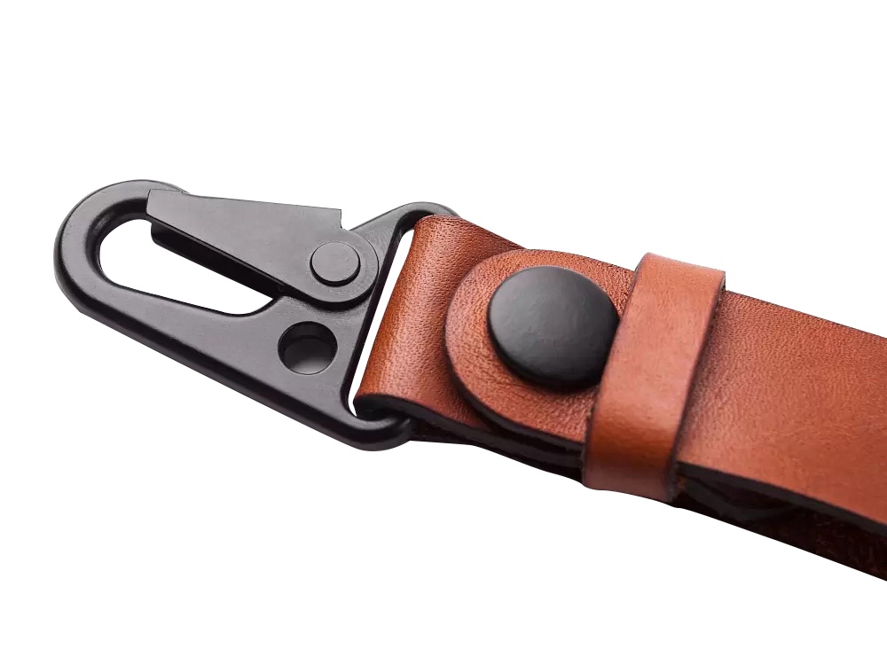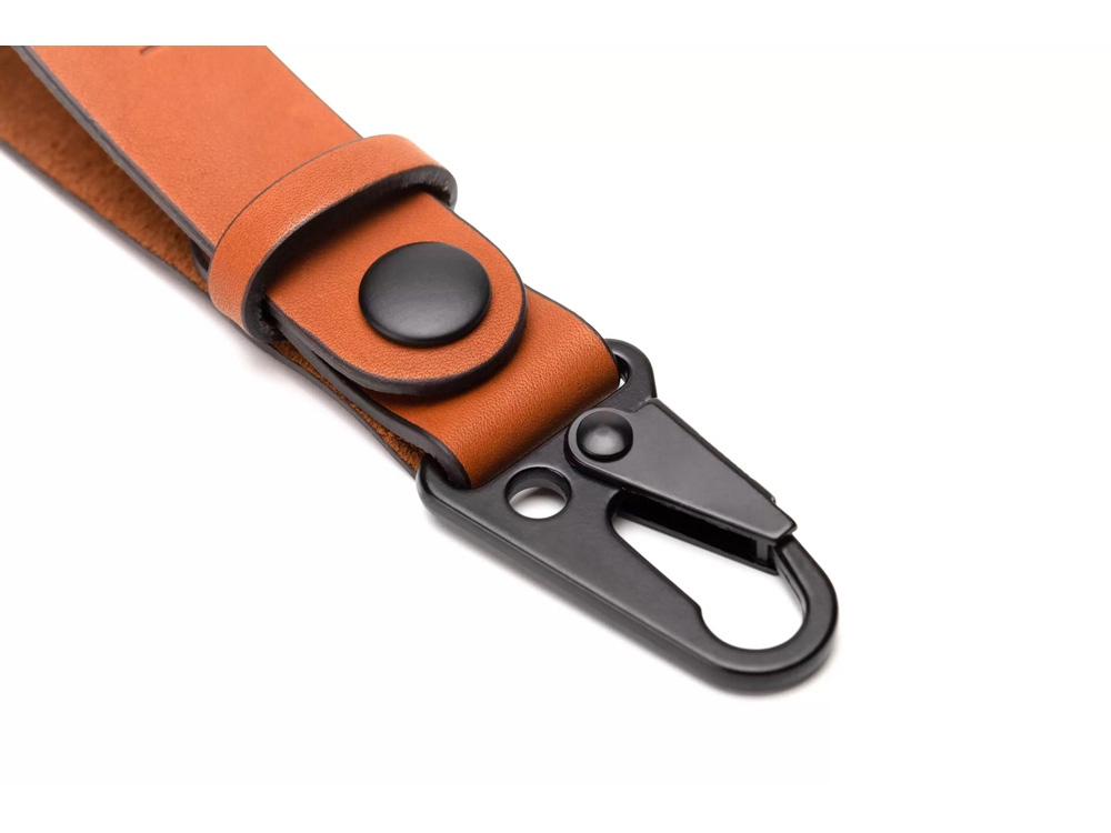Ремешок сшит из прочной кожи оранжевого цвета. Оборудован надёжным металлическим карабином, самопроизвольное расцепление которого невозможно. Ключи, прицепленные к нему, обречены вечно храниться в глубинах сумки или кармана джинсов, и у них нет ни единого шанса потеряться. Прицепить ремешок можно к шлёвке джинсов или к куртке. -