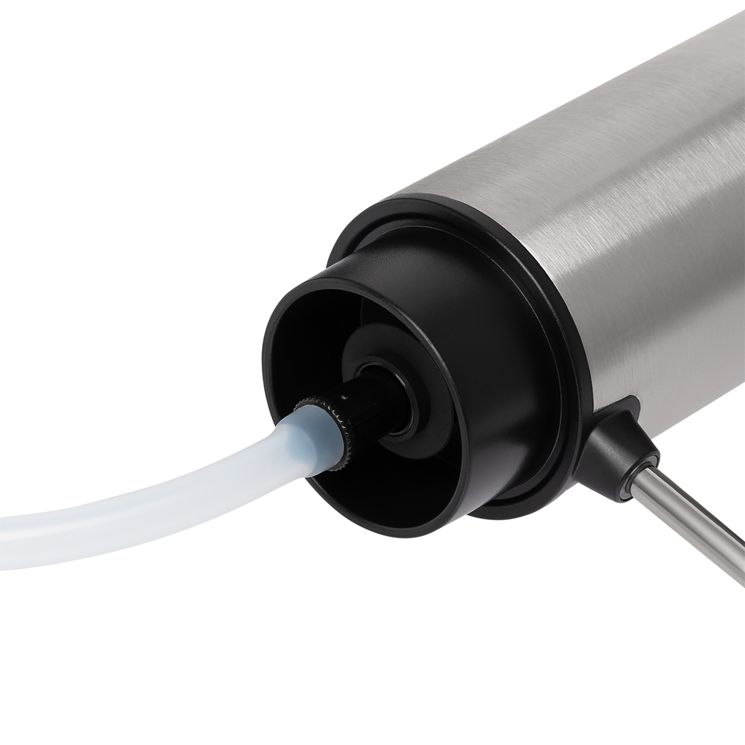 Вставьте трубку внутрь бутылки и наденьте аэратор на горлышко бутылки.