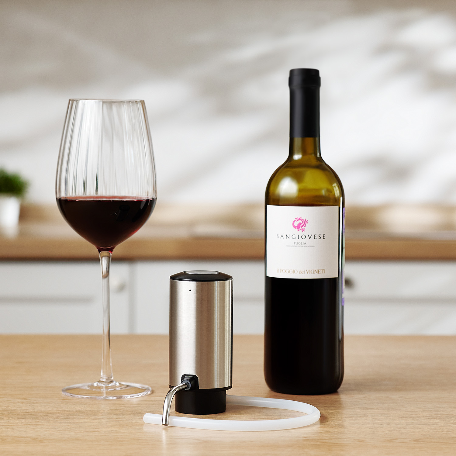 Dante – электрический аэратор, который станет изысканным корпоративным подарком или стильным дополнением к домашнему бару. Его серебристый дизайн притягивает взгляды, а продуманная функциональность превращает дегустацию вина в истинное удовольствие. Dante – это не просто гаджет, это символ современности и безупречного вкуса.
