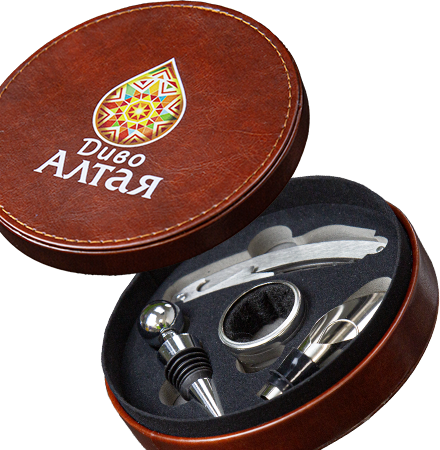 Если вы хотите заказать наборы для вина с логотипом, к вашим услугам: