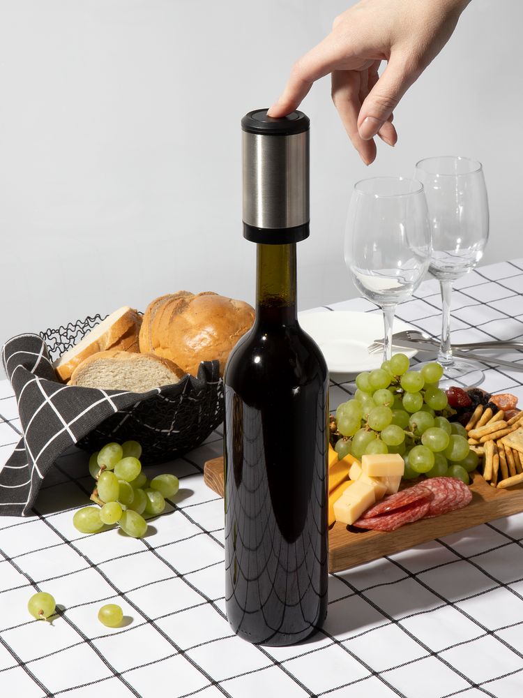 Электрическая пробка Tuoretta поможет одним нажатием кнопки удалить из бутылки весь воздух и сохранить напиток свежим до 7 дней. Внутренняя часть изготовлена из пищевого силикона и не добавляет никаких посторонних ароматов содержимому бутылки.- Литиевая батарея (3,7 В 300 мАч);