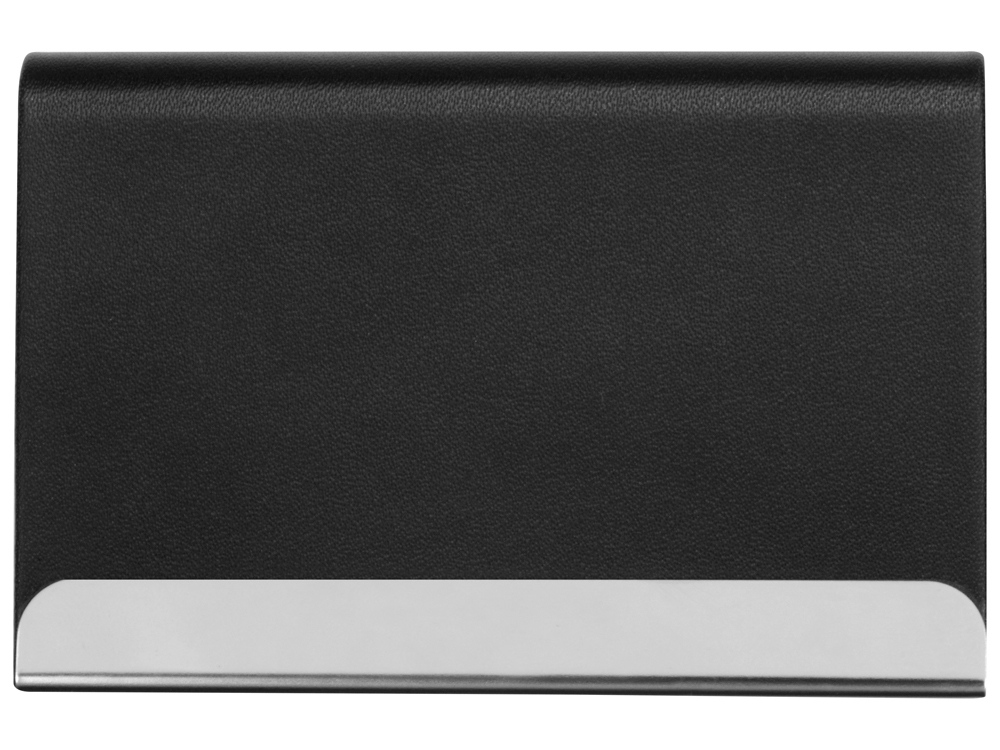 Классическая визитница в сдержанных цветах с хромированным декоративным кантом. Внутри отделана черным бархатом. Вмещает примерно 30 визиток. -