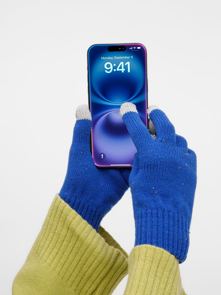 Перчатки Spotti Senso с токопроводящими волокнами на кончиках пальцев позволяют легко управлять смартфоном в любой мороз. Эргономичный крой и эластичная пряжа обеспечивают удобную посадку, сохраняя тепло и свободу движений. Как и в шапке, здесь использованы контрастные нити — визитная карточка коллекции.
