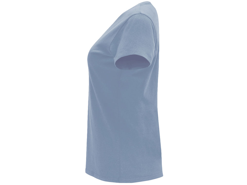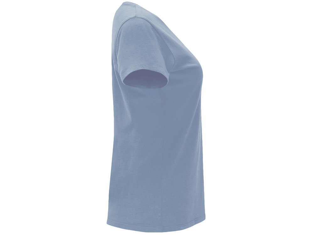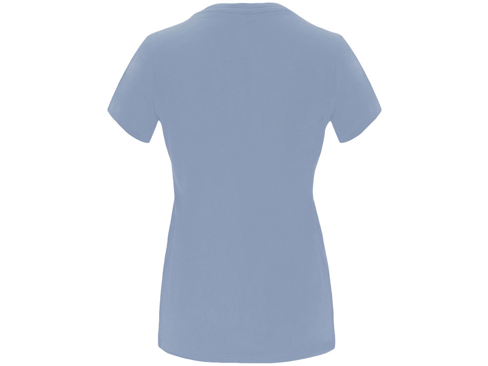 Женская приталенная футболка. Круглый вырез горловины обработан рибом 1х1. Шов горловины укреплен тесьмой. -