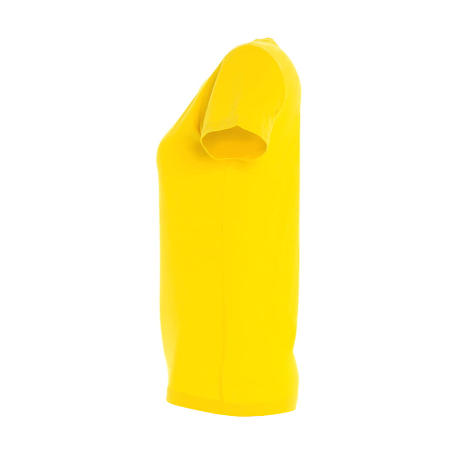 Цвет, близкий к Pantone 1225C Женская футболка Imperial – базовая футболка высокой плотности 190 г м2 для тех, кто ценит надежность и долговечность. Эти критерии особенно важны тем, кто покупает футболки под нанесение для маркетинговых мероприятий. Более плотный материал дольше обрабатывается красителями, но и держатся они намного дольше, что гарантирует яркость и четкость рисунка во время всего срока носки. Отметим, что чем выше качество футболки, тем меньше усадка и, соответственно, тем дольше она выглядит, как новая.Классический вырез лодочкой обработан тесьмой из смеси хлопка и лайкры для более аккуратного прилегания. Для предотвращения растяжения горловины проложены дополнительные укрепляющие строчки. Футболка имеет фасонные (фигурные) боковые швы для более женственной и изящной посадки.Модель отлично подойдет не только для рекламных акций, но и станет прекрасным вариантом корпоративной и повседневной одежды. -