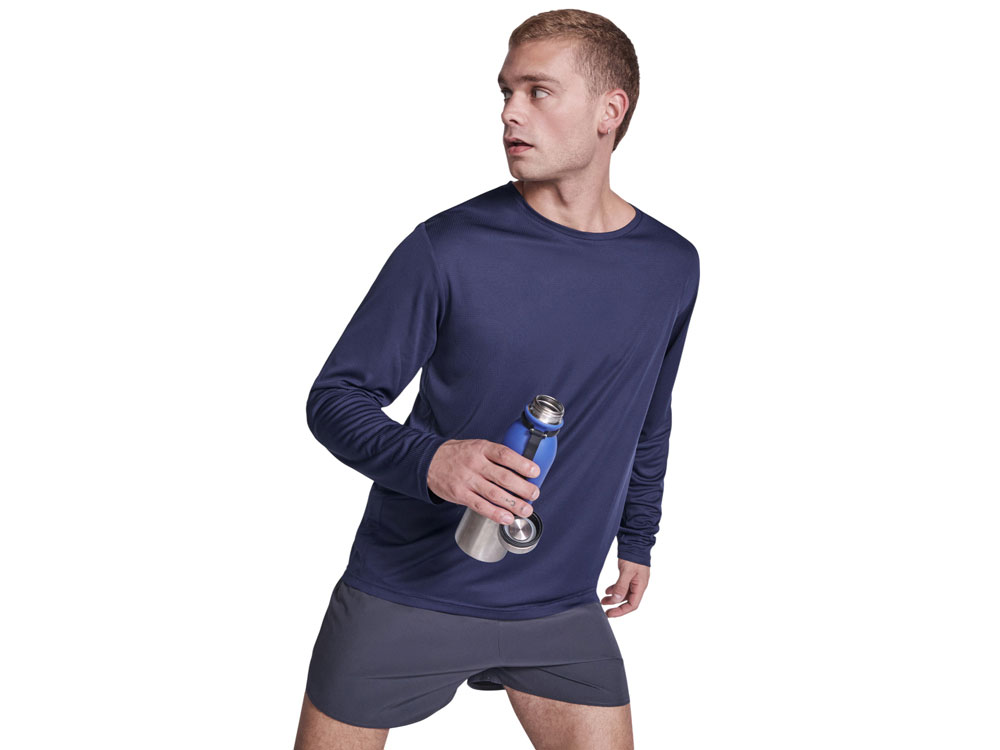 Унисекс лонгслив из технологичного полотна. Отстрочки в тон. Спинка с удлинением. Боковые швы со смещением вперед. -