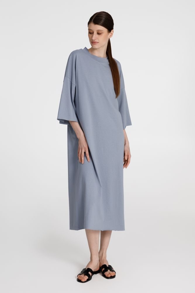 Платье свободного кроя со спущенным плечом.- Воротник из основного полотна тон в тон