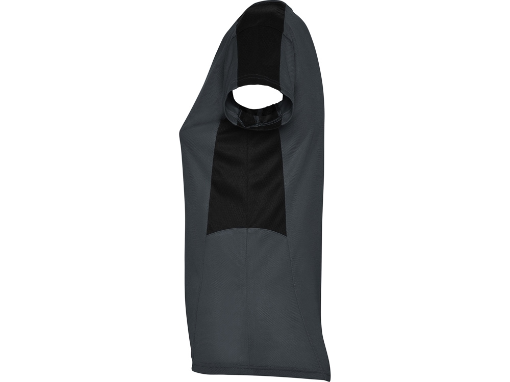 Женская футболка с коротким рукавом. V-образная горловина. Комбинация из 2 полотен контрастного цвета: структурное полотно на полочке и дышащая 3D сетка на плечах и боках. -