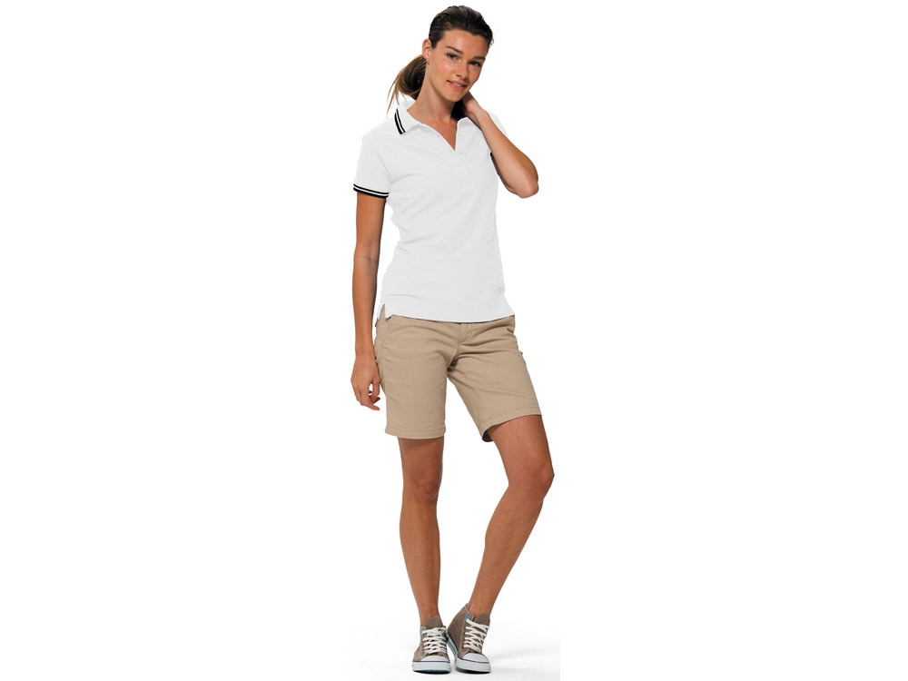 Рубашка-поло Erie с окантовкой. Воротник и манжеты резинка 1х1. Мужская модель с двумя пуговицами, женская - 4 пуговицы в тон изделия. Обшивка внутри воротника. Женская модель с разрезами по бокам. Женская модель приталена. Пике, 100% чесаный хлопок. Плотность 180 г/м2. -