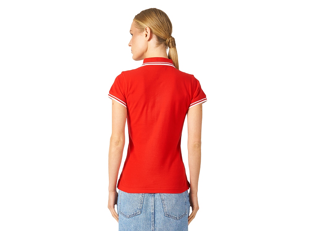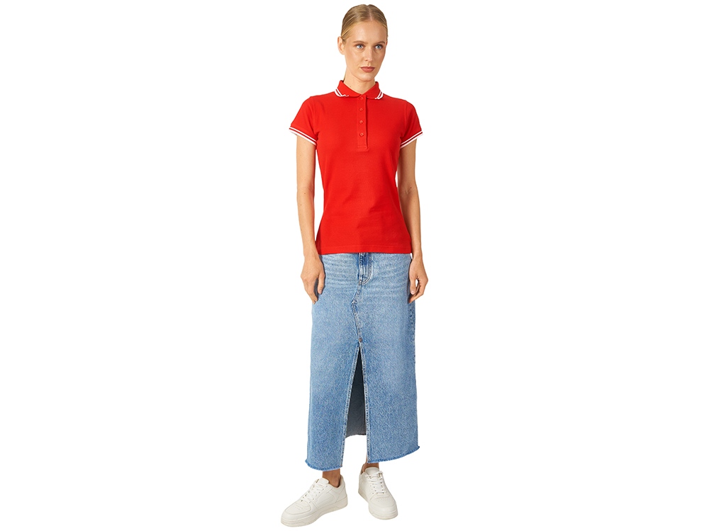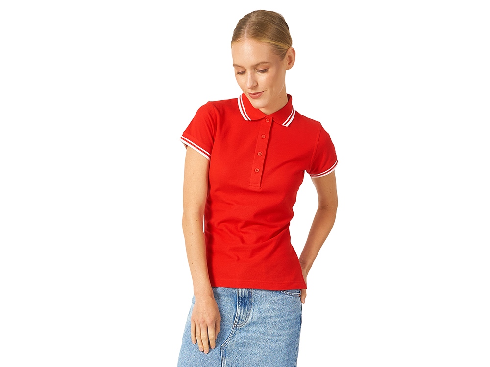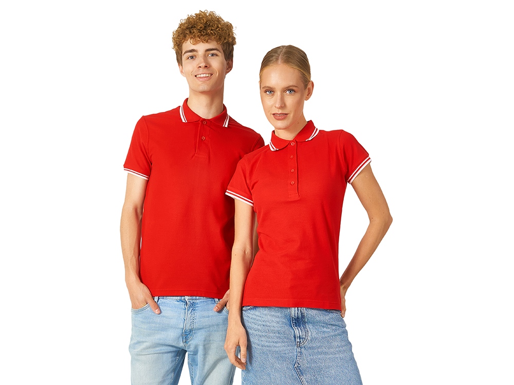 Рубашка-поло Erie с окантовкой. Воротник и манжеты резинка 1х1. Мужская модель с двумя пуговицами, женская - 4 пуговицы в тон изделия. Обшивка внутри воротника. Женская модель с разрезами по бокам. Женская модель приталена. Пике, 100% чесаный хлопок. Плотность 180 г/м2. -