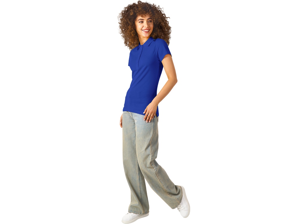 Женская рубашка-поло First. Воротник 1х1. Обшивка внутри воротника. Мужская и детская модели с 2 пуговицами, женская - с 4 пуговицами. Пуговицы с гравировкой в тон. Пике, 100% хлопок. 160 г/м2.