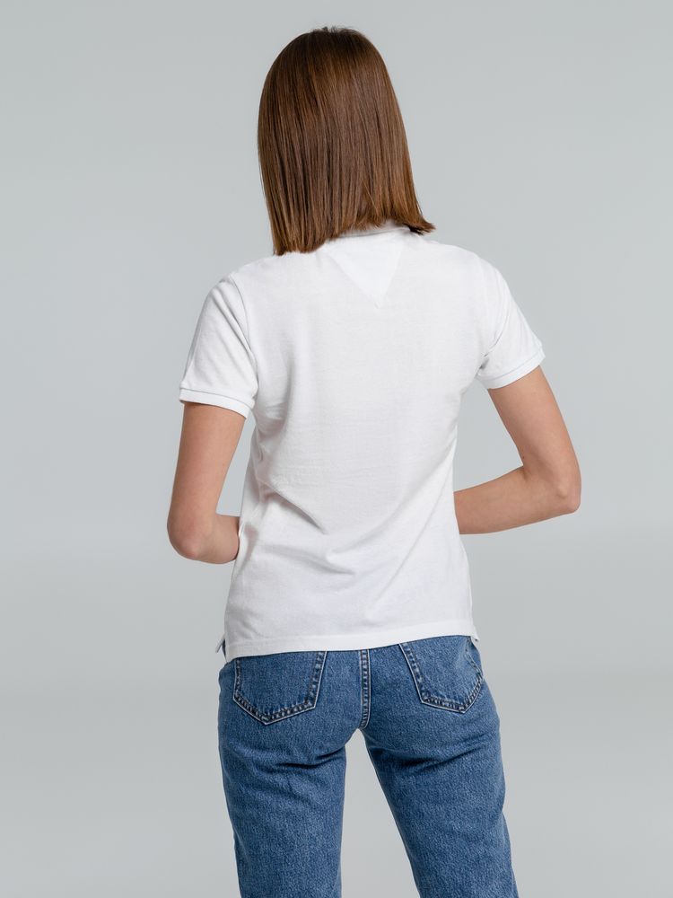 Приталенная женская рубашка поло из гребенного хлопка.- Планка с пуговицами тон в тон