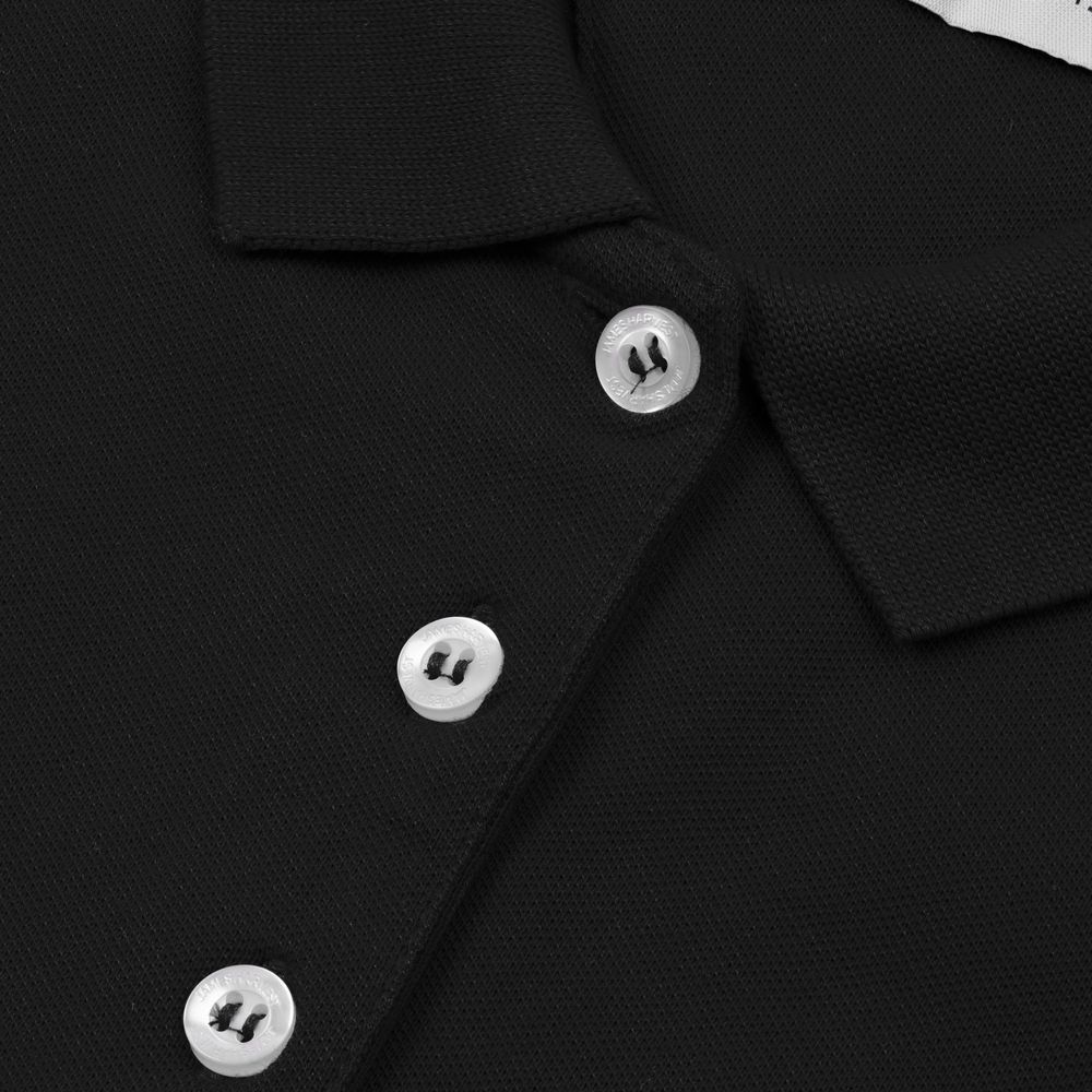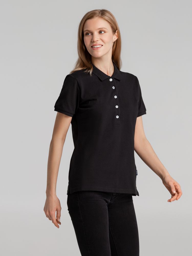 Приталенная женская рубашка поло из гребенного хлопка.- Застегивается на 5 пуговицы белого цвета