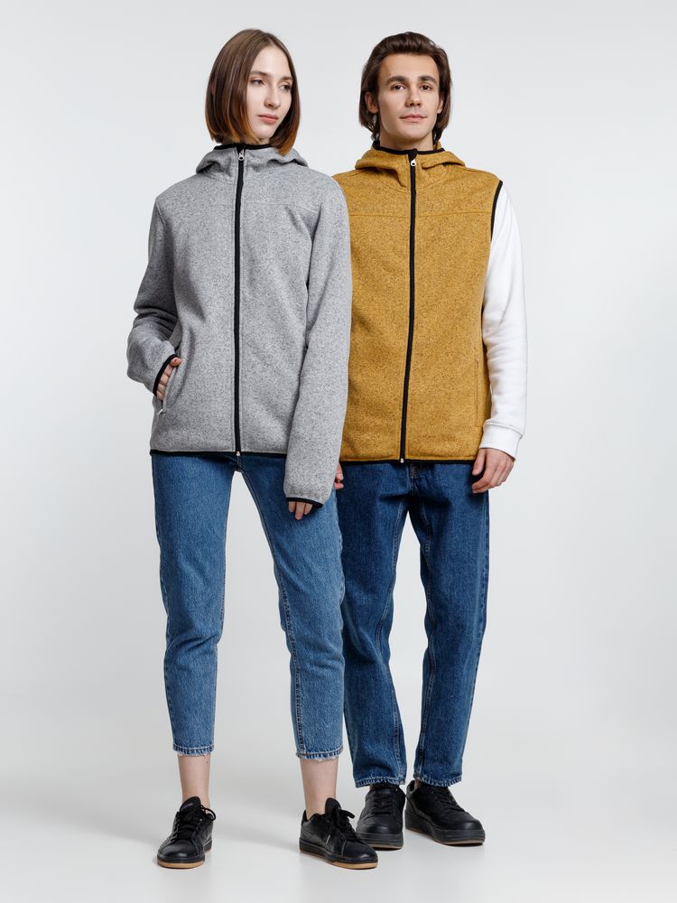 Вязаный жилет унисекс на молнии с капюшоном.- Ветрозащитная планка