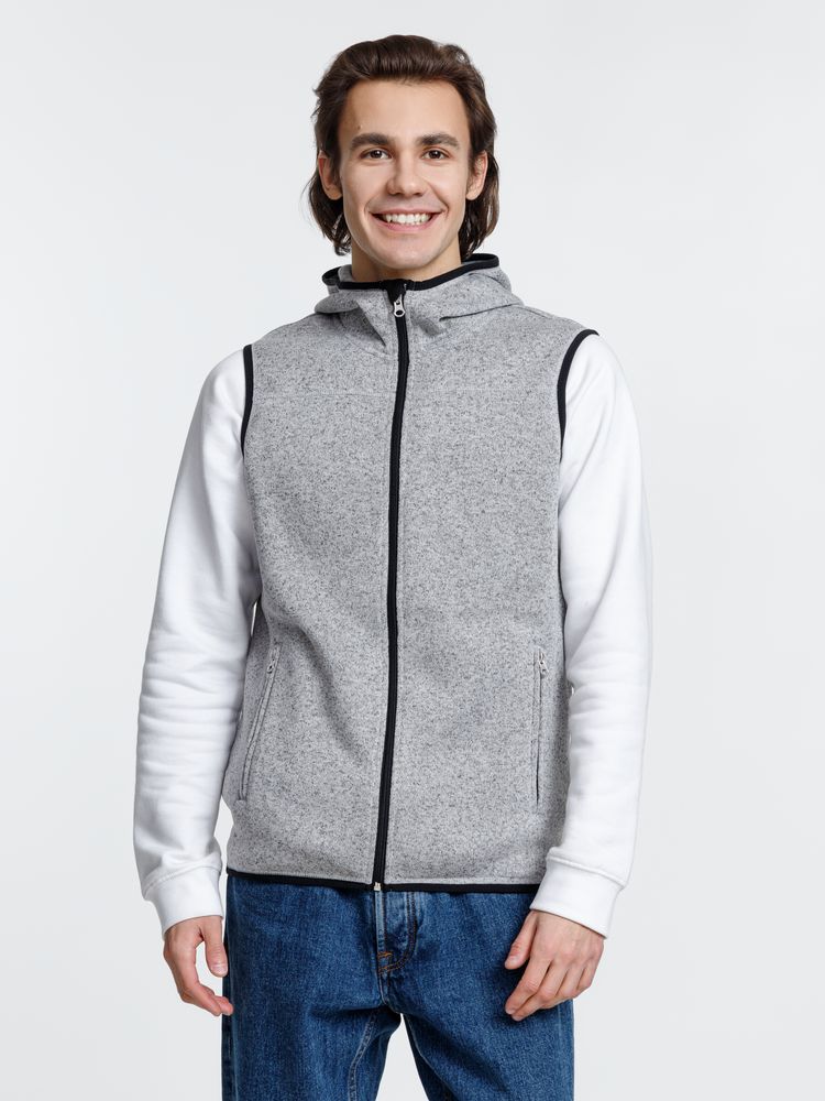 Вязаный жилет унисекс на молнии с капюшоном.- Ветрозащитная планка