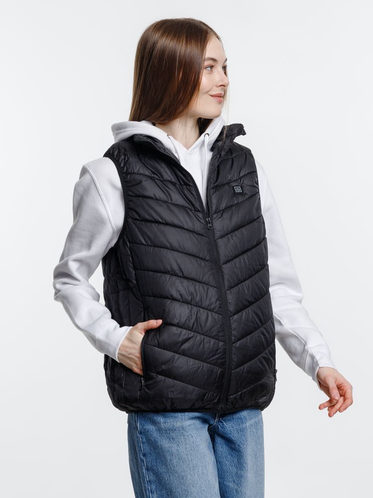 При использовании аккумулятора емкостью 10000 мАч нагревательный элемент будет работать от 6 до 12 часов в зависимости от выбранного режима работы и температуры окружающей среды.- Жилет на молнии с воротником-стойкой и 2 наружными карманами