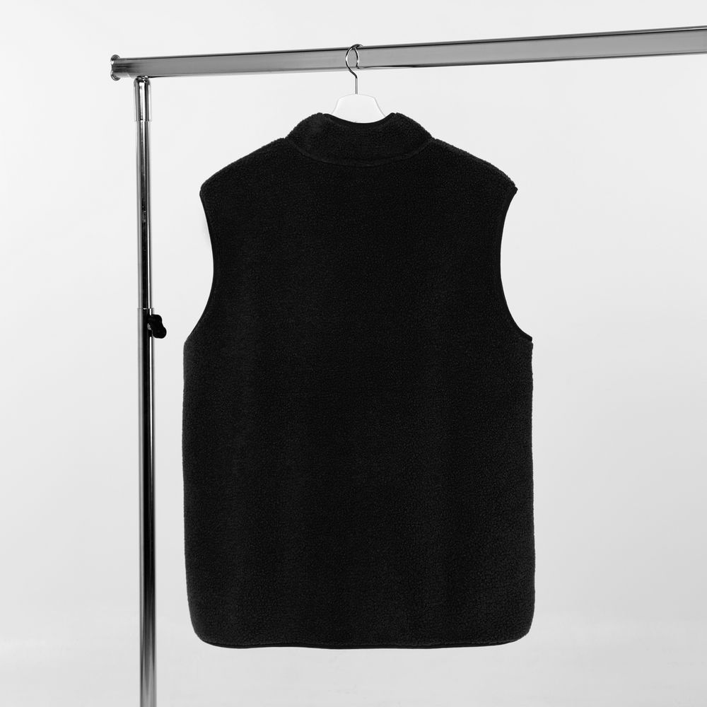 Жилет на молнии из современного двухслойного материала — модный искусственный мех снаружи и уютный флис внутри. Накладной карман из гладкого нейлона создает заметный визуальный контраст и делает жилет Oblako по-настоящему стильным предметом гардероба.- Воротник-стойка