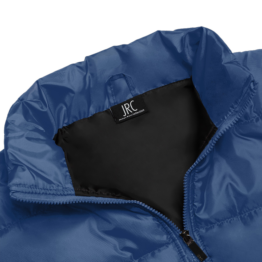Основная ткань: цвет, близкий к Pantone 293 U, подкладка: цвет, близкий к Pantone Hexachrome Black C Удобный воротник-стойка. Облегченная пластиковая молния с металличесиким брендированным пуллером JRC. Два передних кармана на молнии. Удобный внутренний карман на липучке. -