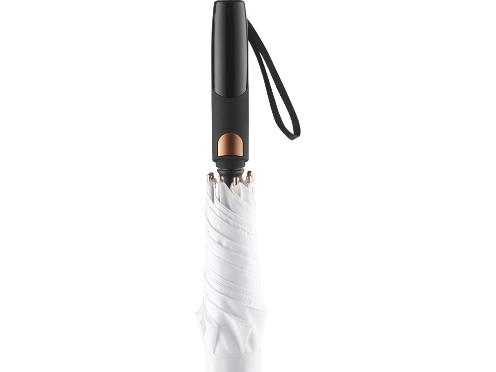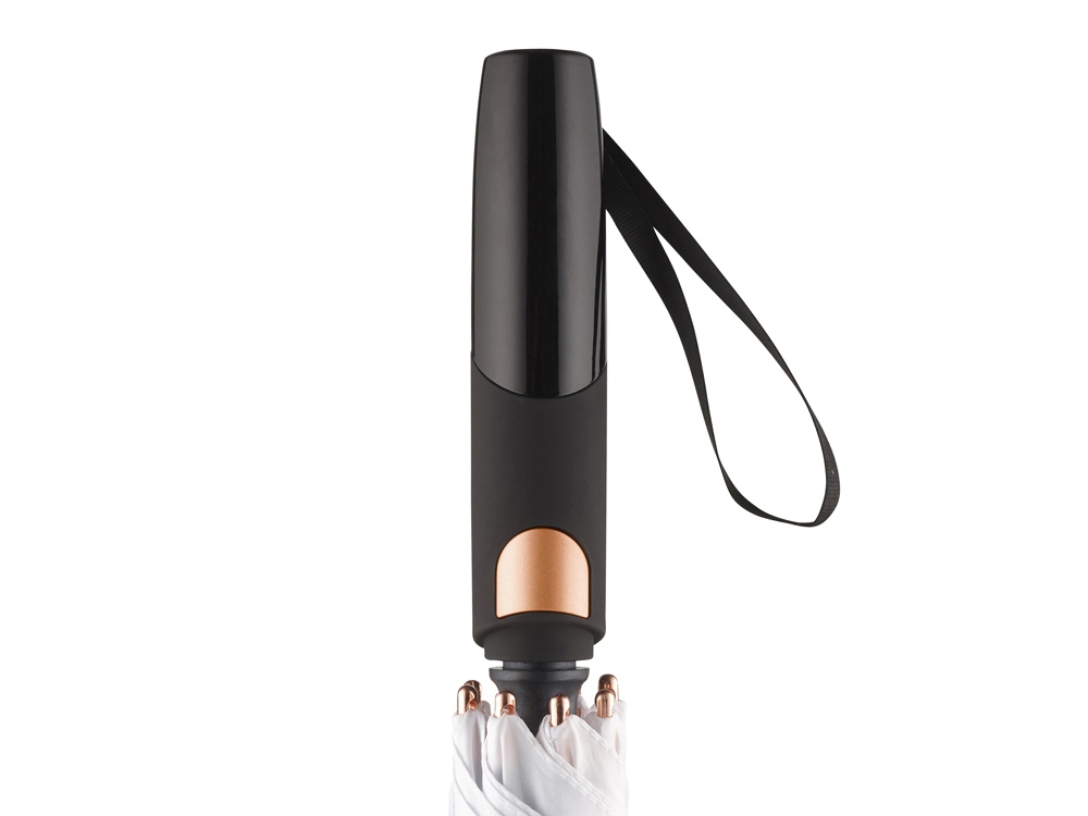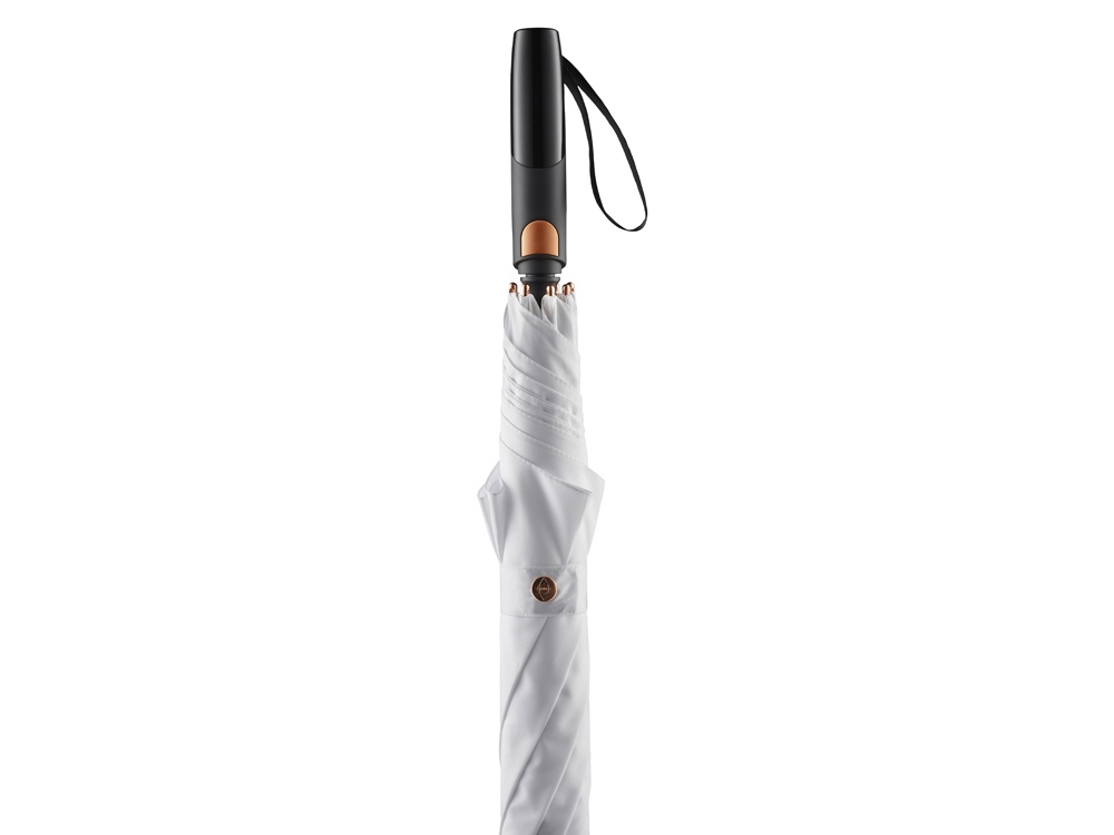 Зонт-трость с большим куполом укроет от дождя двух человек. Каркас изготовлен из особо прочного алюминия. Детали из алюминия окрашены в популярные цвета и стильно выглядят. Зонт плавно раскрывается нажатием кнопки на ручке. В ручку интегрирован эластичный шнур для большего удобства. -