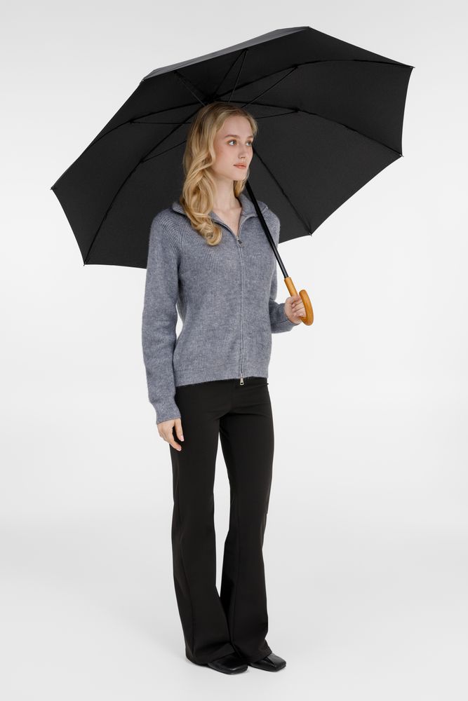 Элегантный зонт с большим куполом и деревянной J-образной ручкой.- Зонт-полуавтомат, 8 спиц