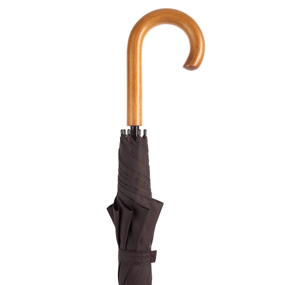 Элегантный зонт с большим куполом и деревянной J-образной ручкой.- Зонт-полуавтомат, 8 спиц
