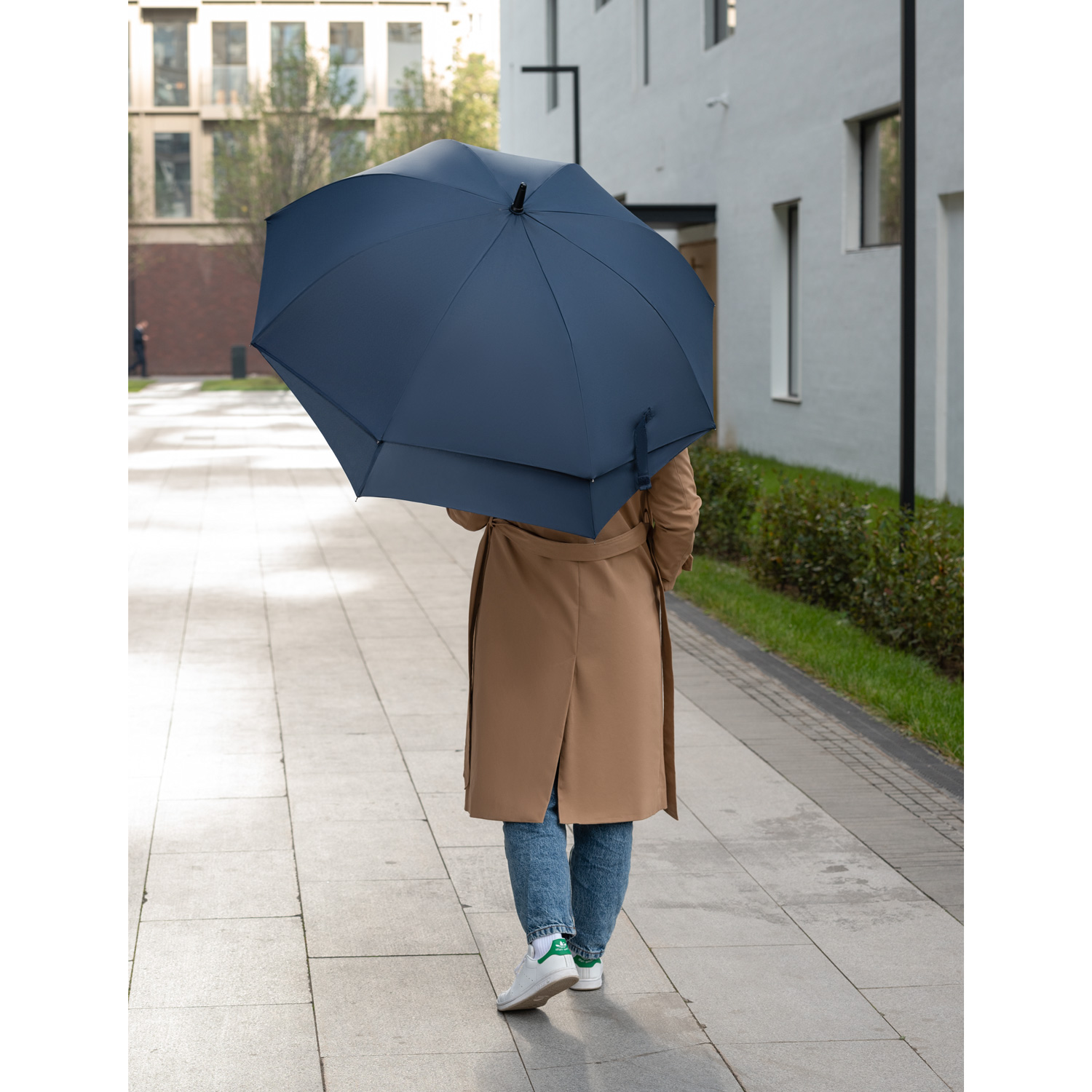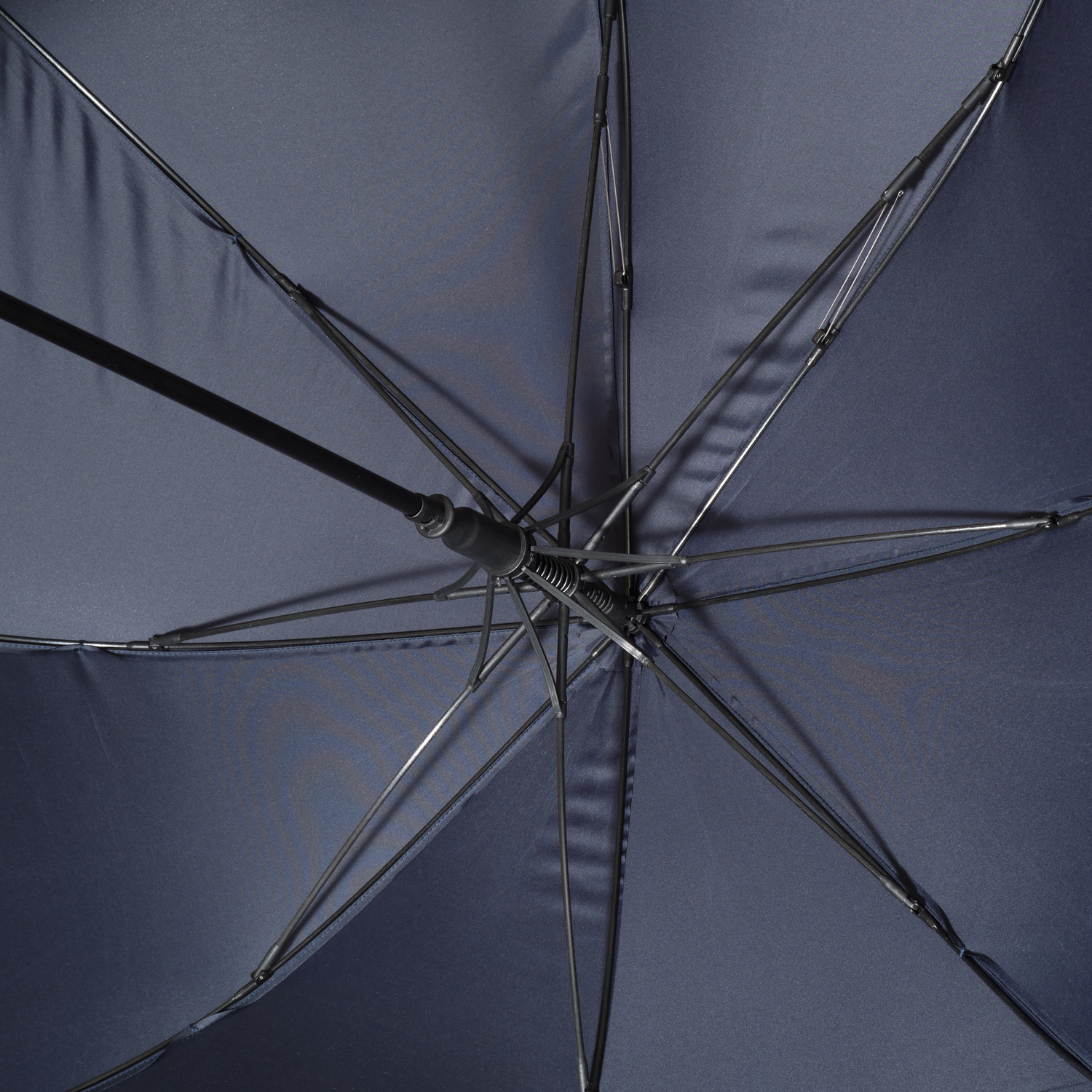 Прочная конструкция «антишторм» с гибкими спицами из стеклопластика защищает зонт от поломок при сильном ветре. Водостойкий купол изготовлен из эпонжа 190Т, быстро высыхающего после использования.
