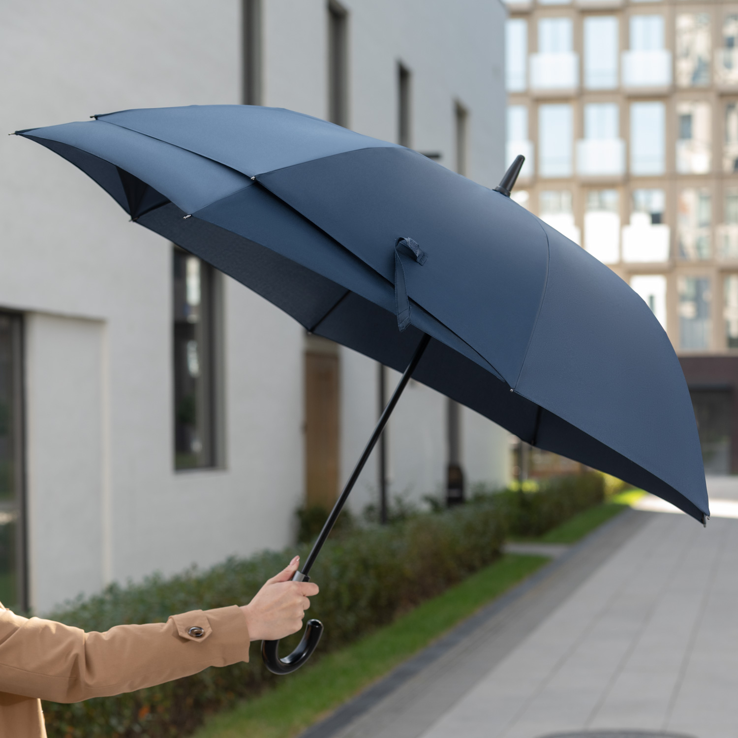 Зонты необычной формы: при раскрытии купол Dune увеличивается по площади с одной стороны, что способствует лучшей защите от ветра и ливня.