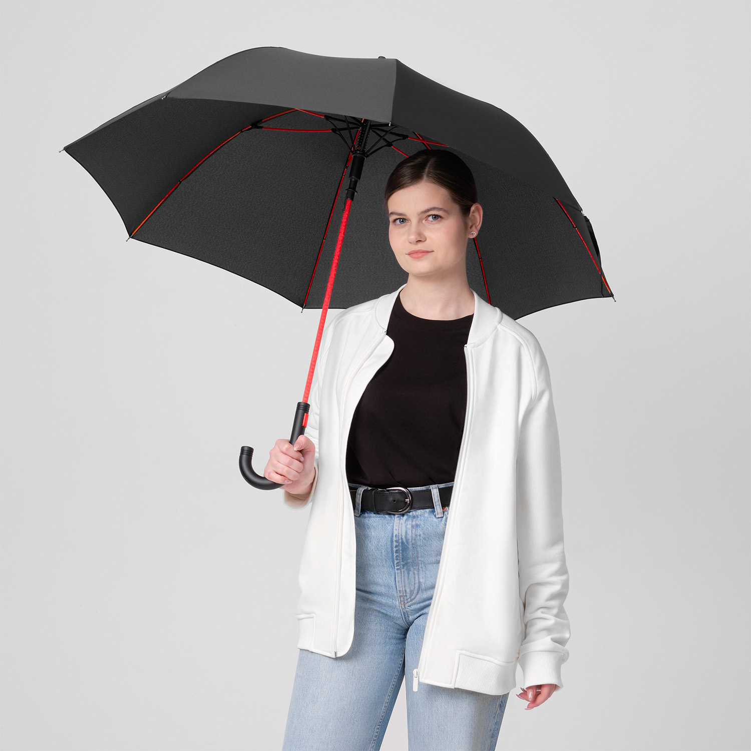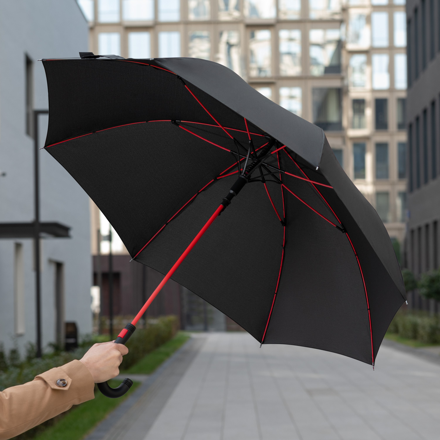 Зонт-трость Квантум (Quantum), черный/красный
