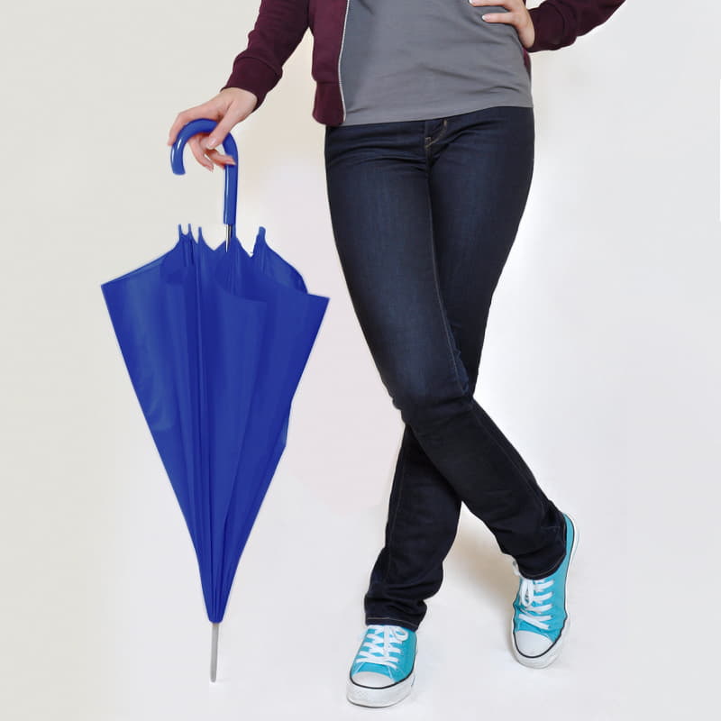 Зонт-трость, механический. Диаметр купола: 103 см, длина стержня: 84 см. Состав купола: 100% полиэстер 190T. Состав спицы и стержень: металл. Пластиковая ручка в цвет купола. Цвет купола близкий к пантону 293C. -