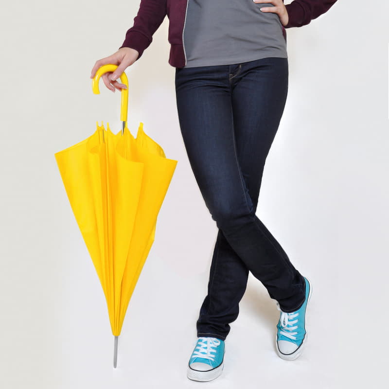 Зонт-трость, механический.  Диаметр купола: 103 см, длина стержня: 84 см.  Состав купола: 100% полиэстер 190T.  Состав спицы и стержень: металл.  Пластиковая ручка в цвет купола.  Цвет купола близкий к пантону 123C.