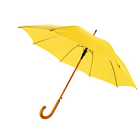 Зонт-трость с деревянной ручкой, полуавтомат; желтый; D=103 см, L=90см; 100% полиэстер