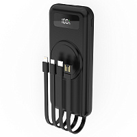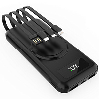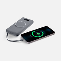 Магнитный беспроводной внешний аккумулятор со встроенными кабелями Мэни, 10000 мАч